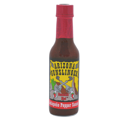 The “Hot Sauce Lover’s Hot Sauce”. ARIZONA GUNSLINGER is made with all natural ingredients; featuring red ripened jalapenos peppers, vinegar and salt. Hence, it is thick, rich and has a distinctive full bodied flavor. ARIZONA GUNSLINGER adds flavor and zest to meats, vegetables, soups, marinades, dips, dressing… almost any dish.