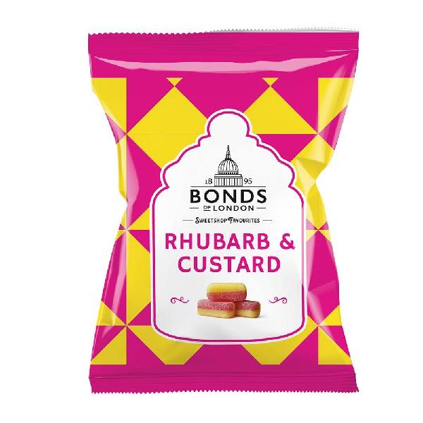 The Bonds Rhubarb & Custard’s are dual flavored boiled sweets, one half tart rhubarb, the other half creamy custard. A classic flavor, loved by all ages!