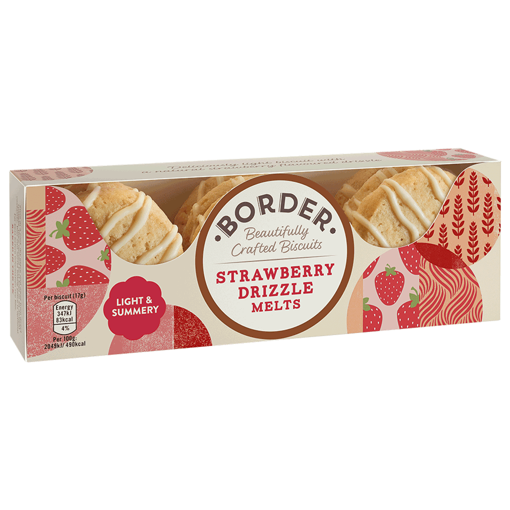Made in Lanark, UK, Border biscuits are made with quality ingredients with traditional mixing methods. These deliciously light biscuit are winning combination of sweet strawberry flavour combined with a creamy drizzle. Ripe, light and fresh flavours make this biscuit truly one of life’s little pleasures.