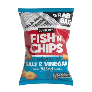 Burton’s Fish ‘n‘ Chips Salt & Vinegar are a delicious snack time treat, with each bag full of irresistible salt & vinegar flavoured mini baked snack biscuits.