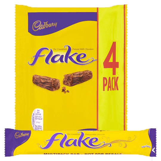 The crumbliest, flakiest milk chocolate. This decadent Cadbury Flake bar is made from the crumbliest, flakiest chocolate, for a delicate melt-in-the-mouth texture. Each pack contains 4 bars, ideal for an afternoon treat and for that sweet chocolate escape at work, home or on the go.