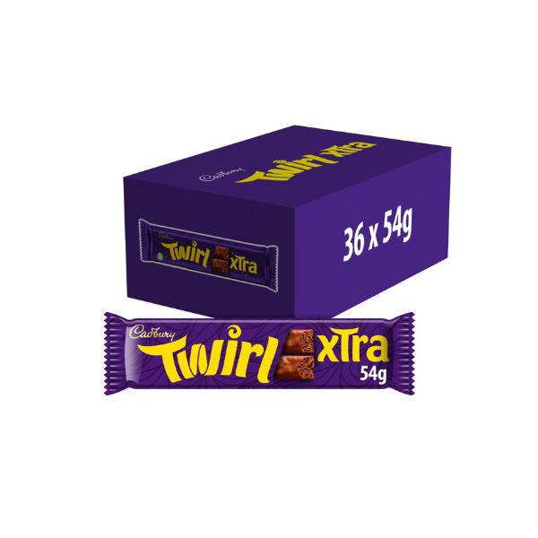 Same taste, bigger bars with Twirl Xtra Duo chocolate bars! A light, chocolatey delight. Bite through the Cadbury milk chocolate coating and let the delicate swirls and curls unfold as they melt in your mouth. It’s the ultimate lift. Crafted with sustainably sourced cocoa and boasting a vegetarian-friendly recipe, Twirl Xtra Duo caters to a wider audience while upholding Cadbury’s commitment to quality and ethical practices. Each bite features the signature creamy milk chocolate that melts effortlessly on the tongue, followed by the delightful surprise of delicate cocoa swirls adding a touch of playful texture.