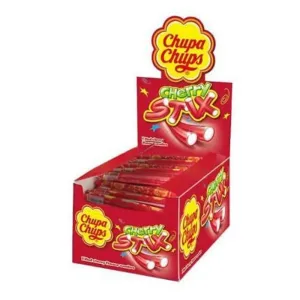 These little Chupa Chups Cherry Stix are delicious and soft-filled. Imported from Britain. A sweet addition to a red candy-themed Candy Bar.