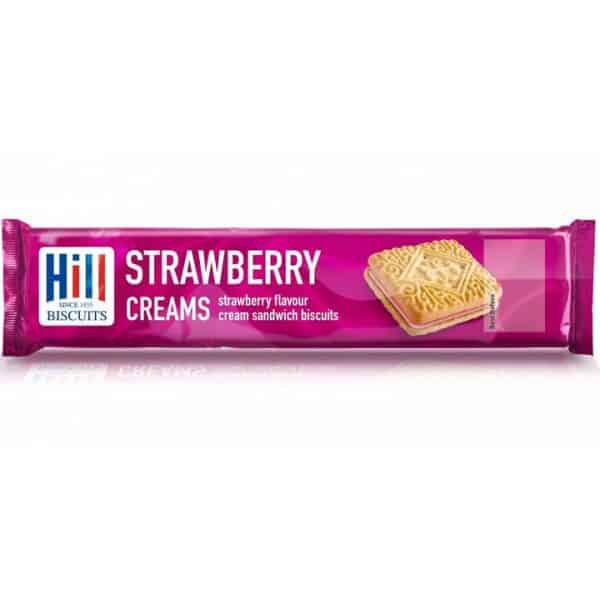 A fruity strawberry cream sandwiched between two crisp and crumbly biscuits. Enjoy the pleasure of summer with every bite all year round.