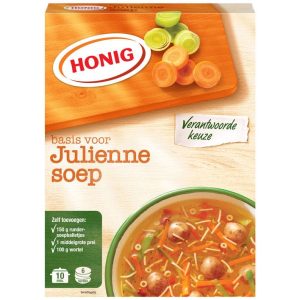 Honig Julienne soup is a light, clear vegetable soup with vermicelli, finely chopped vegetables, and fine garden herbs. With the addition of fresh ingredients, you can make a delicious homemade soup.