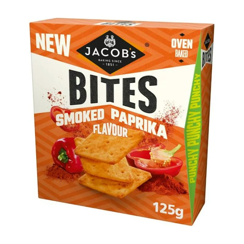Crunchy, oven-baked cracker bites seasoned with smoky, peppery paprika that brings a warm, grilled-flavour kick. Light yet satisfying, their crisp texture and bold seasoning make them great for snacking straight from the bag, pairing with dips, or topping with cheese and spreads.