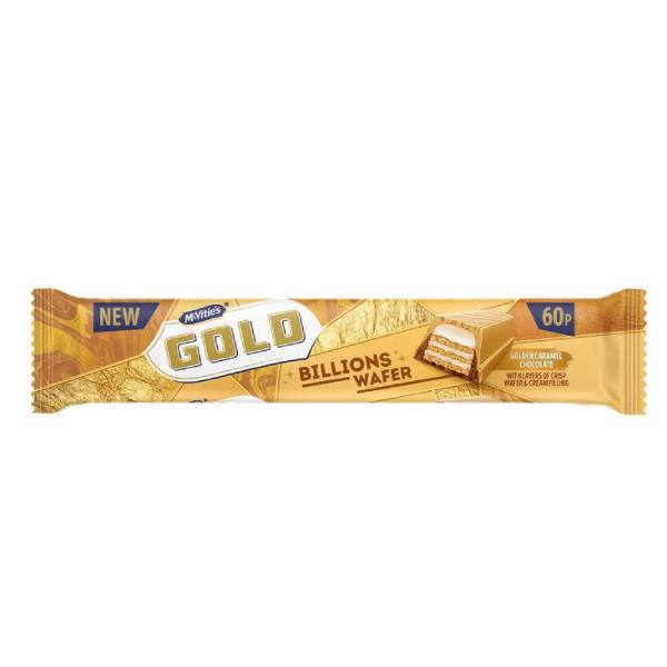 McVitie’s Gold Billions Wafer features the golden caramel coating with the addition of crispy wafer and chocolate cream. The nostalgic lunchbox favorite was first launched back in 1988, making the Gold Billions Wafer the first adaptation on the long-standing caramel covered biscuit in 35 years.