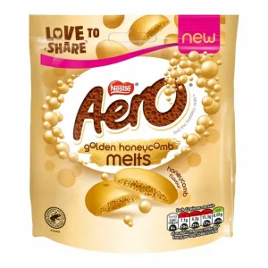 Immerse yourself in the sheer delight of these velvety chocolate melts that redefine the classic Aero experience. Each bite-sized piece boasts the signature Aero bubbles, now infused with the sweet and irresistible essence of honeycomb. This unique confection offers a delightful melt-in-your-mouth experience, combining the smoothness of Aero chocolate with the satisfying crunch of honeycomb. The playful textures and delightful flavours make the Nestle Aero Melts Honeycomb Pouch a perfect treat for those seeking a sweet escape with a twist. Conveniently packaged in a pouch, these Aero Melts are perfect for on-the-go indulgence or sharing with friends and family.