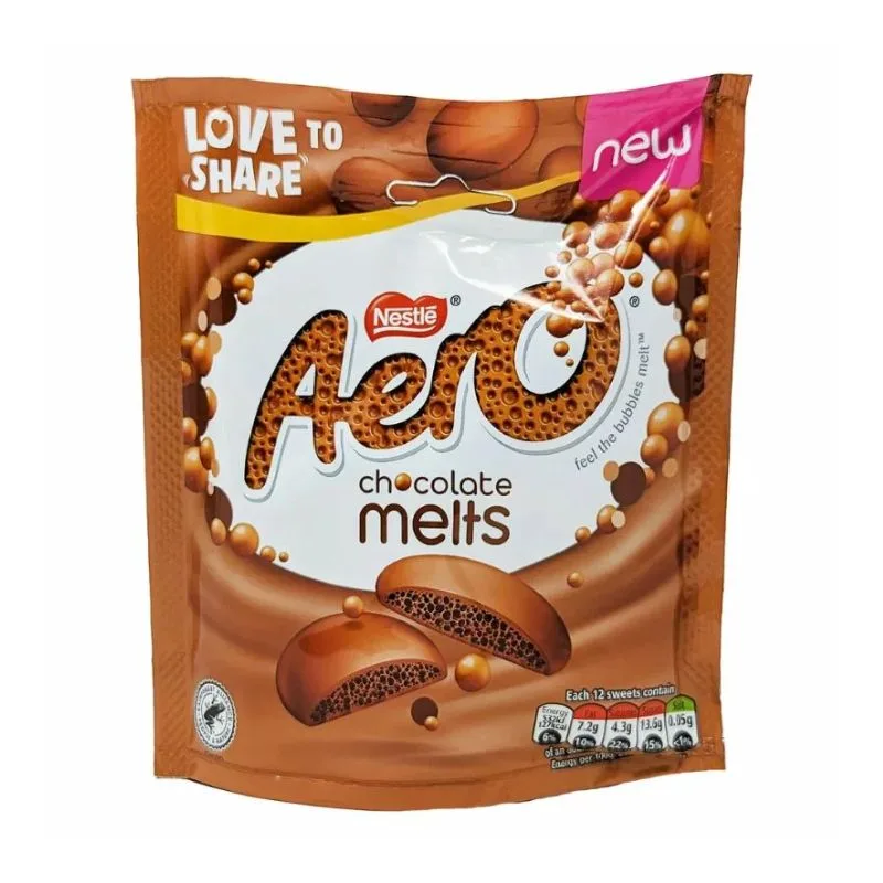 Bite-sized “bubbly” milk-chocolate pieces that melt instantly on your tongue — thanks to the signature aerated texture with tiny air bubbles throughout. Each button delivers smooth, creamy milk chocolate with a light, airy feel that melts away, making it a satisfyingly indulgent treat.