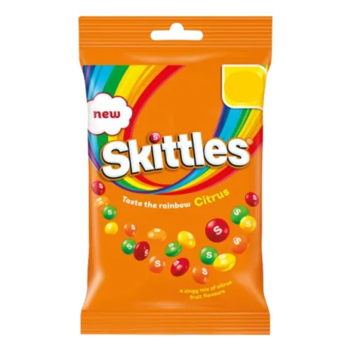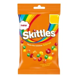 Skittles Citrus Sweets Treat Bags offer a tangy and refreshing twist on the classic Skittles experience. These bags contain a mix of five citrus flavors: Orange, Lemon, Lime, Mandarin, and Blood Orange, all encased in the signature crunchy shell and chewy center.