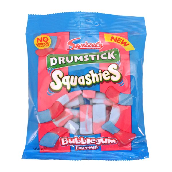 A Classic Reimagined: A different form of the British favourite Drumstick lolly, in bubblegum flavoured squashie gummy sweet form.