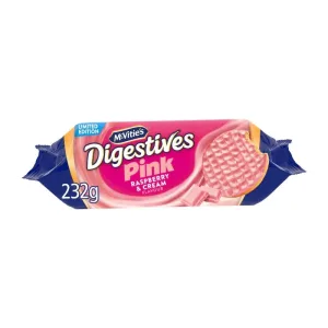 Golden-baked digestive biscuits topped with a smooth, raspberry-and-cream–flavoured coating — combining the classic wheaty crunch of a digestive with a bright, fruity-cream sweetness. The contrast between the crumbly biscuit base and the soft, tangy raspberry-cream topping makes them a fun, nostalgic twist on the traditional biscuit. Ideal for pairing with tea or coffee, sharing at snack time, or adding a fruity touch to everyday treats.
