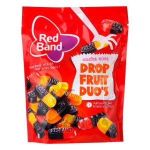 Double enjoyment with these Dropfruit Duos! It is the one and only original combination of licorice and fruit winegums in one candy.